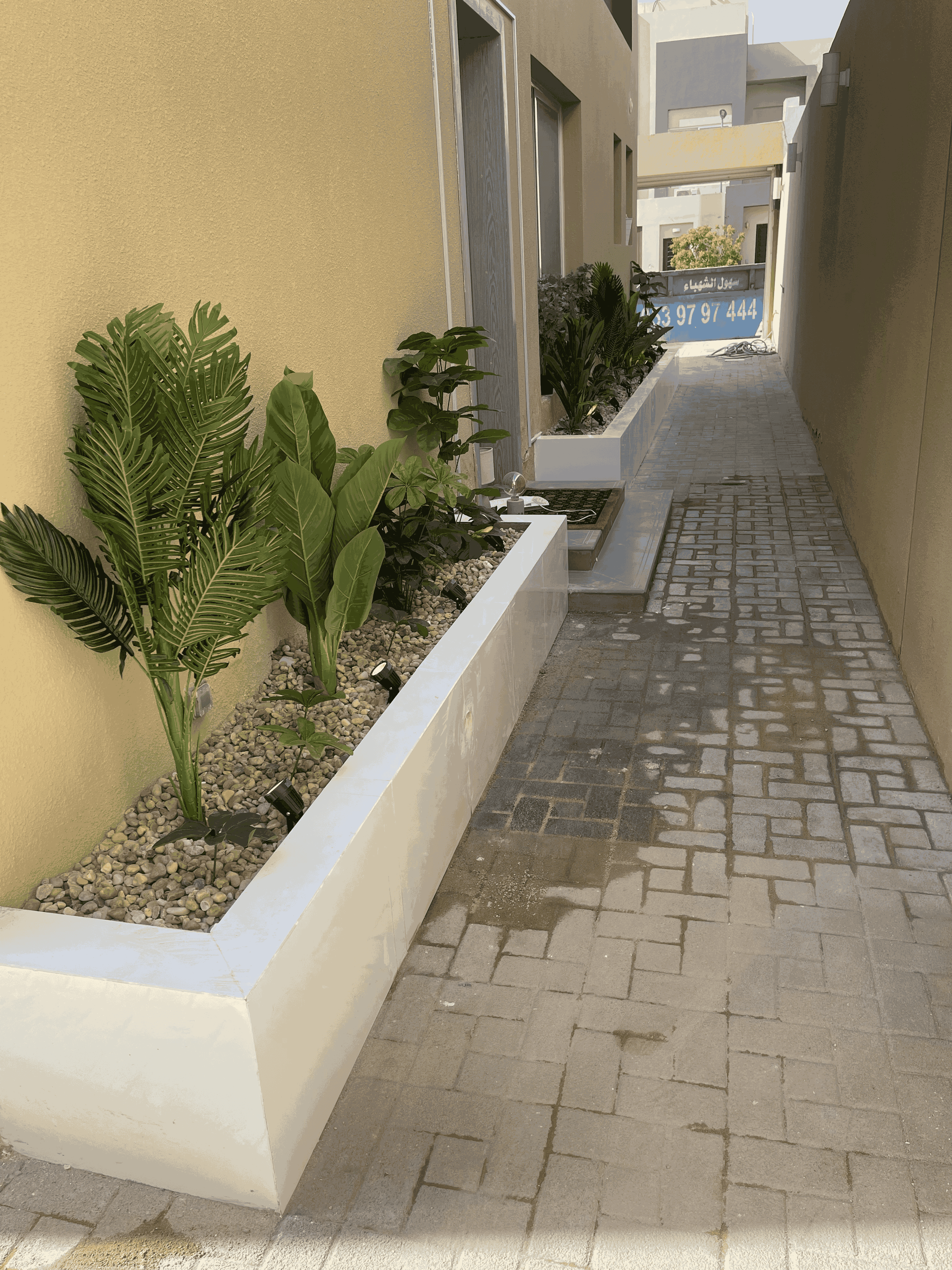✔️ تصميم وتنفيذ أحواض زرع مخصصة حسب المساحة والستايل – سواء في الحوش، الممرات، المداخل أو الزوايا الجانبية