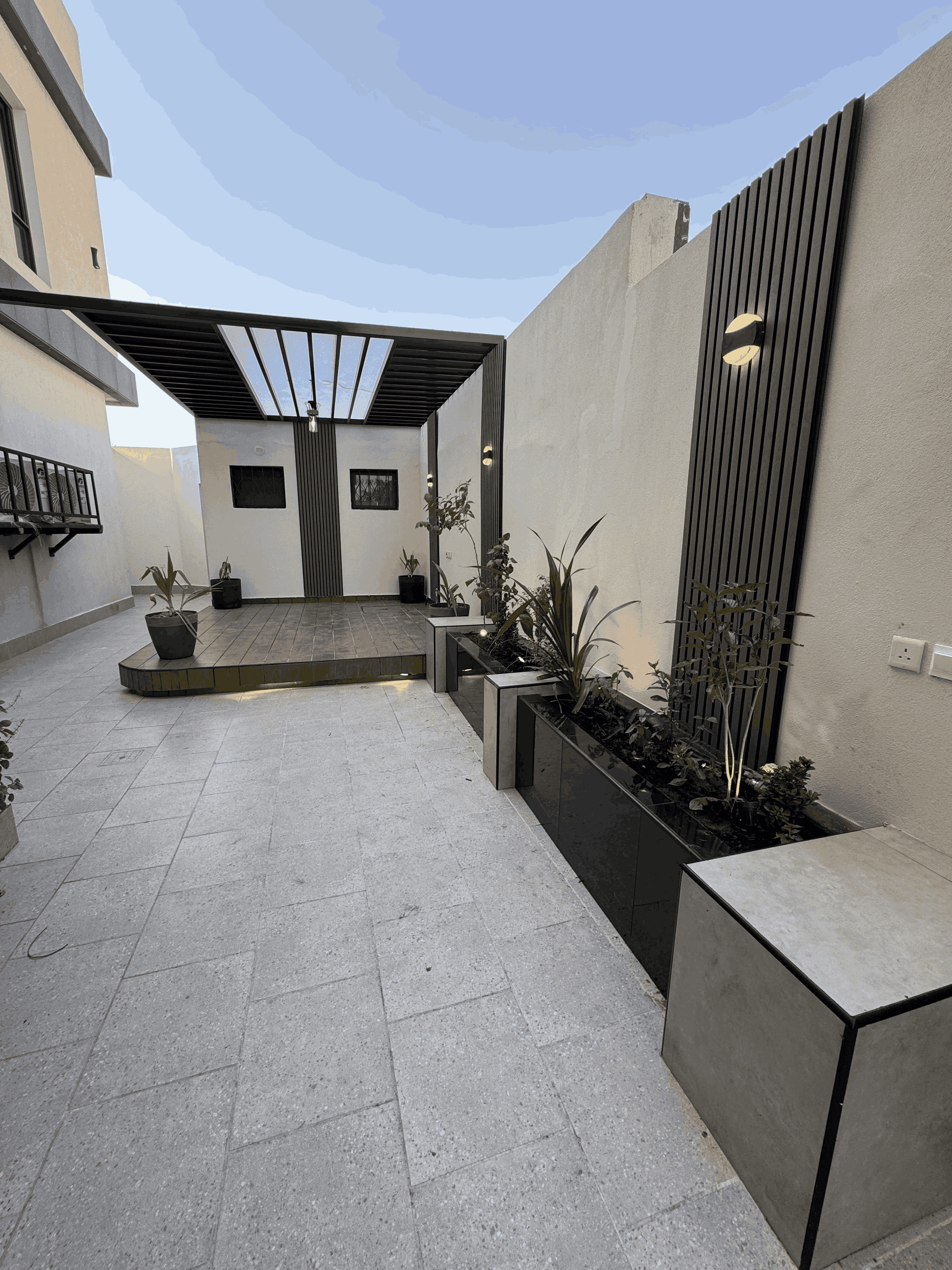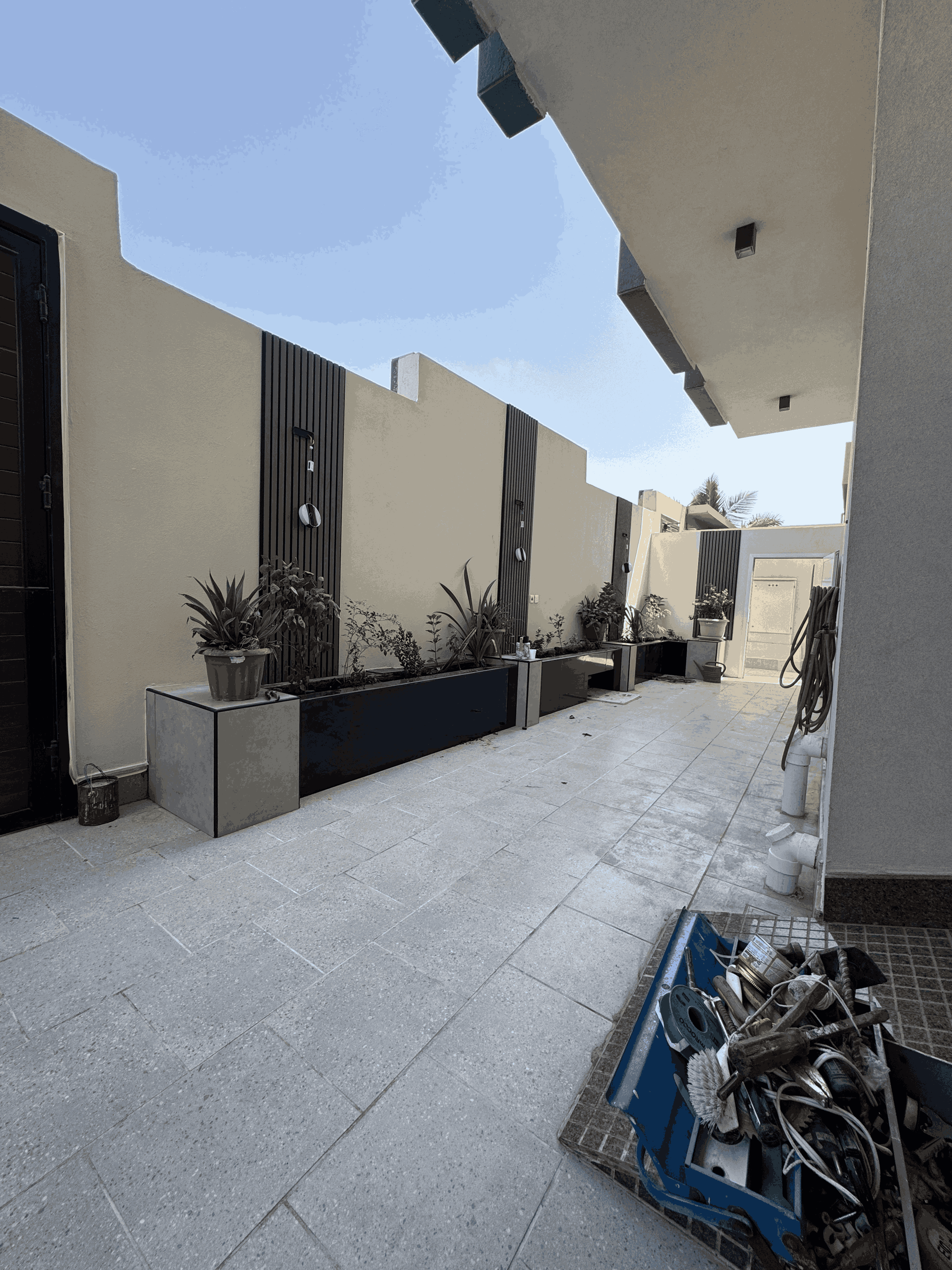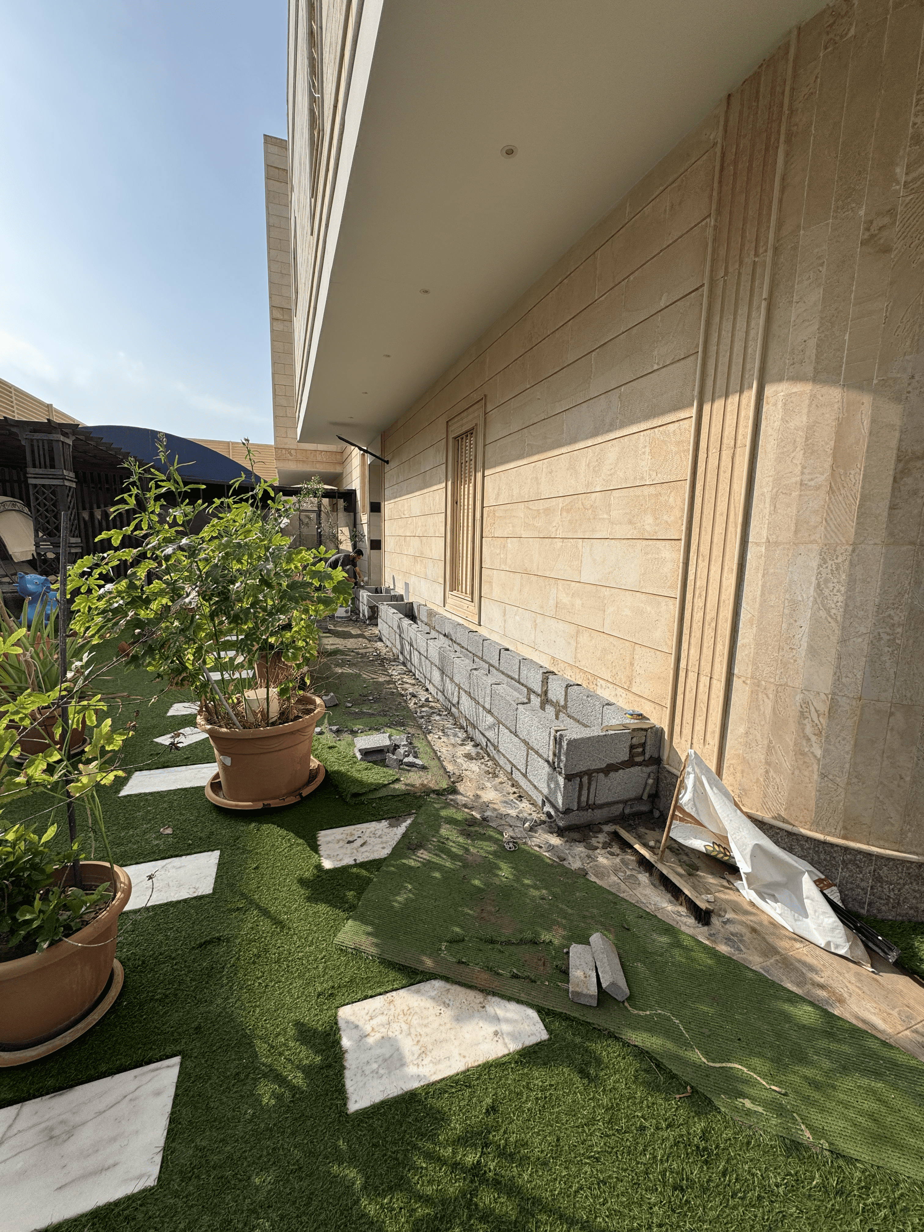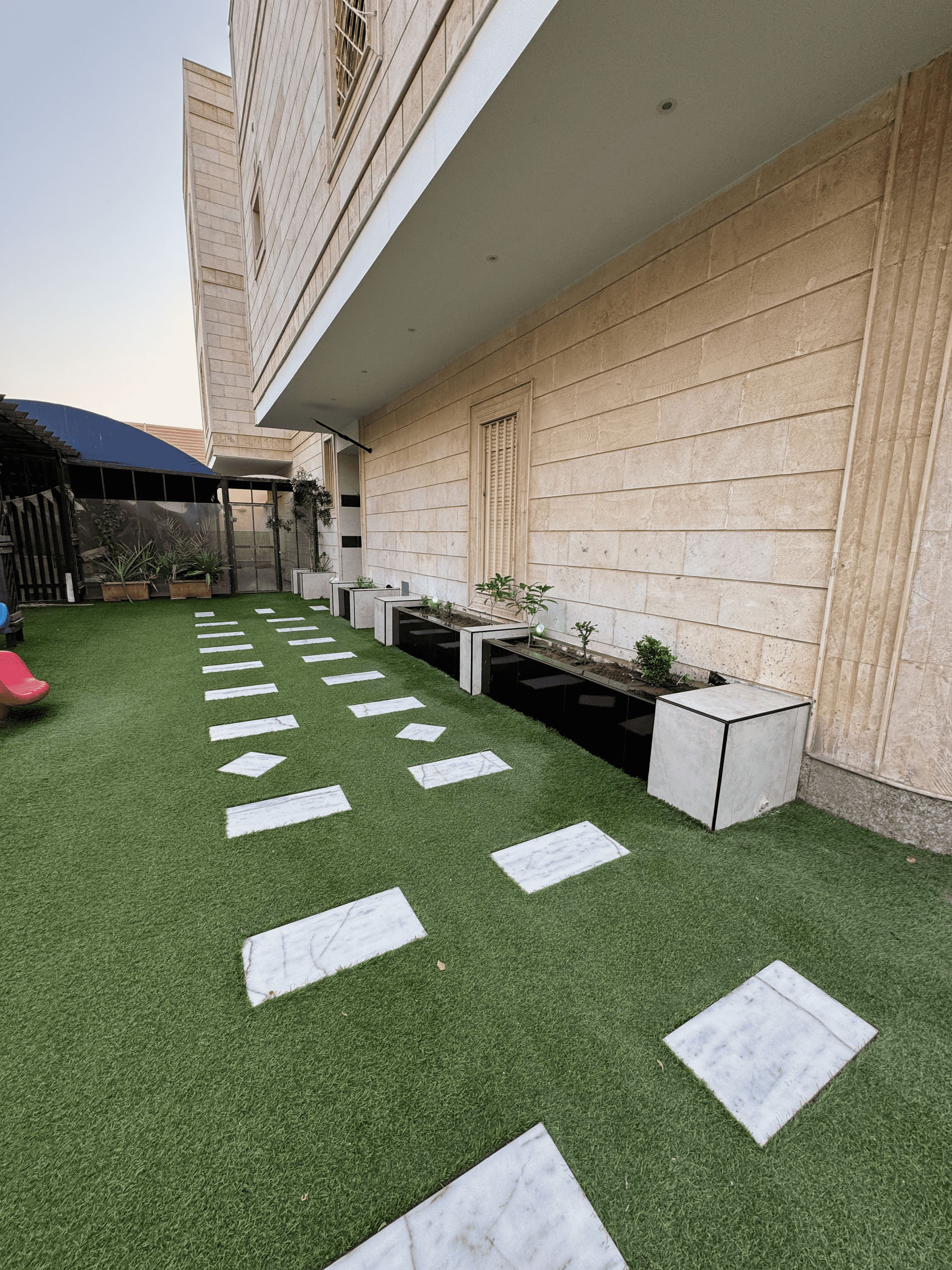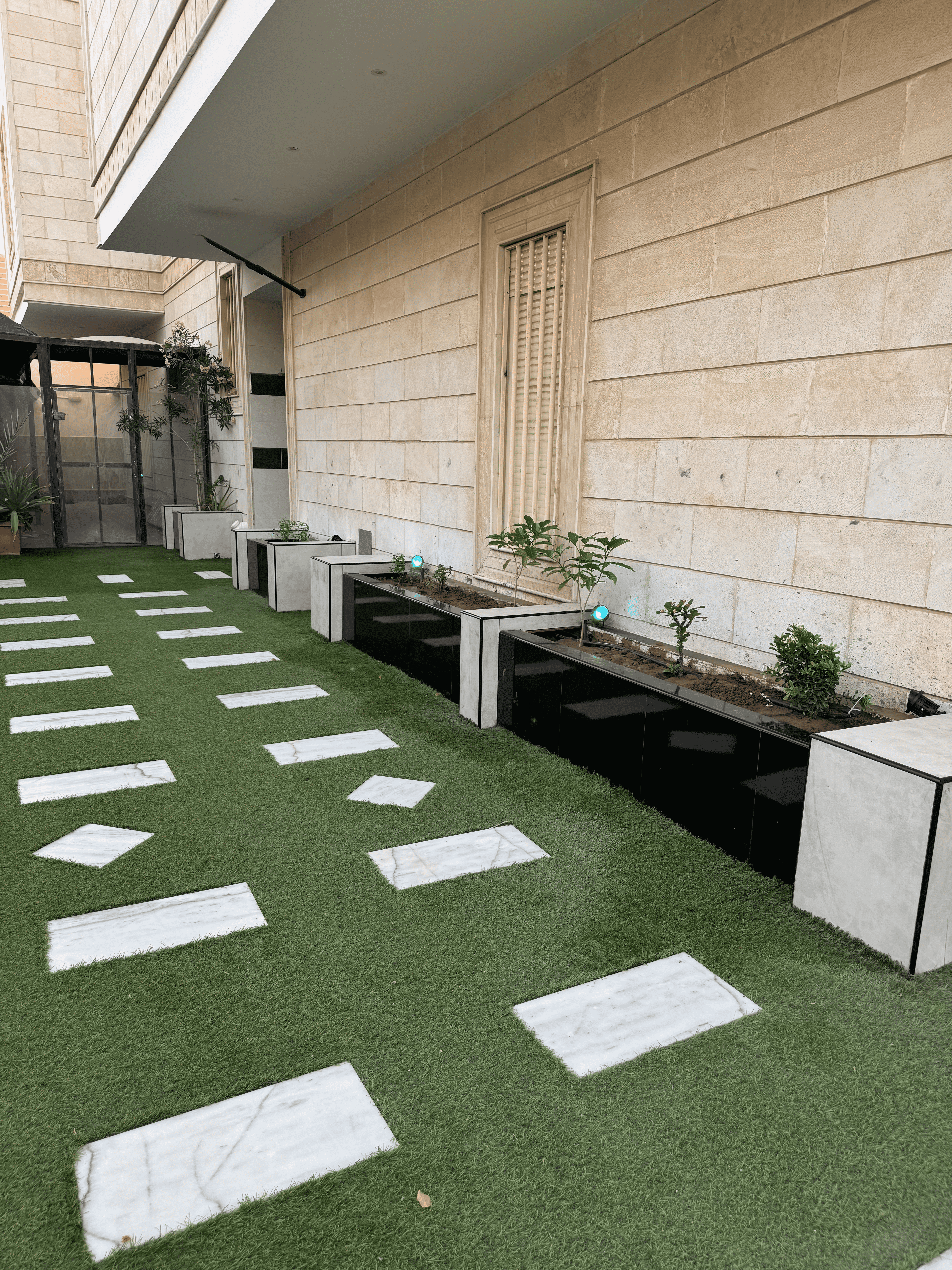 "كنت أبغى تصميم ممر مزروع مع أحواض ناعمة الشكل، ونفذوا لي شغل مرتب جداً. الخامات فايبرجلاس بس تحسها فخمة كأنها رخام. التنسيق جميل وسهل التنظيف."