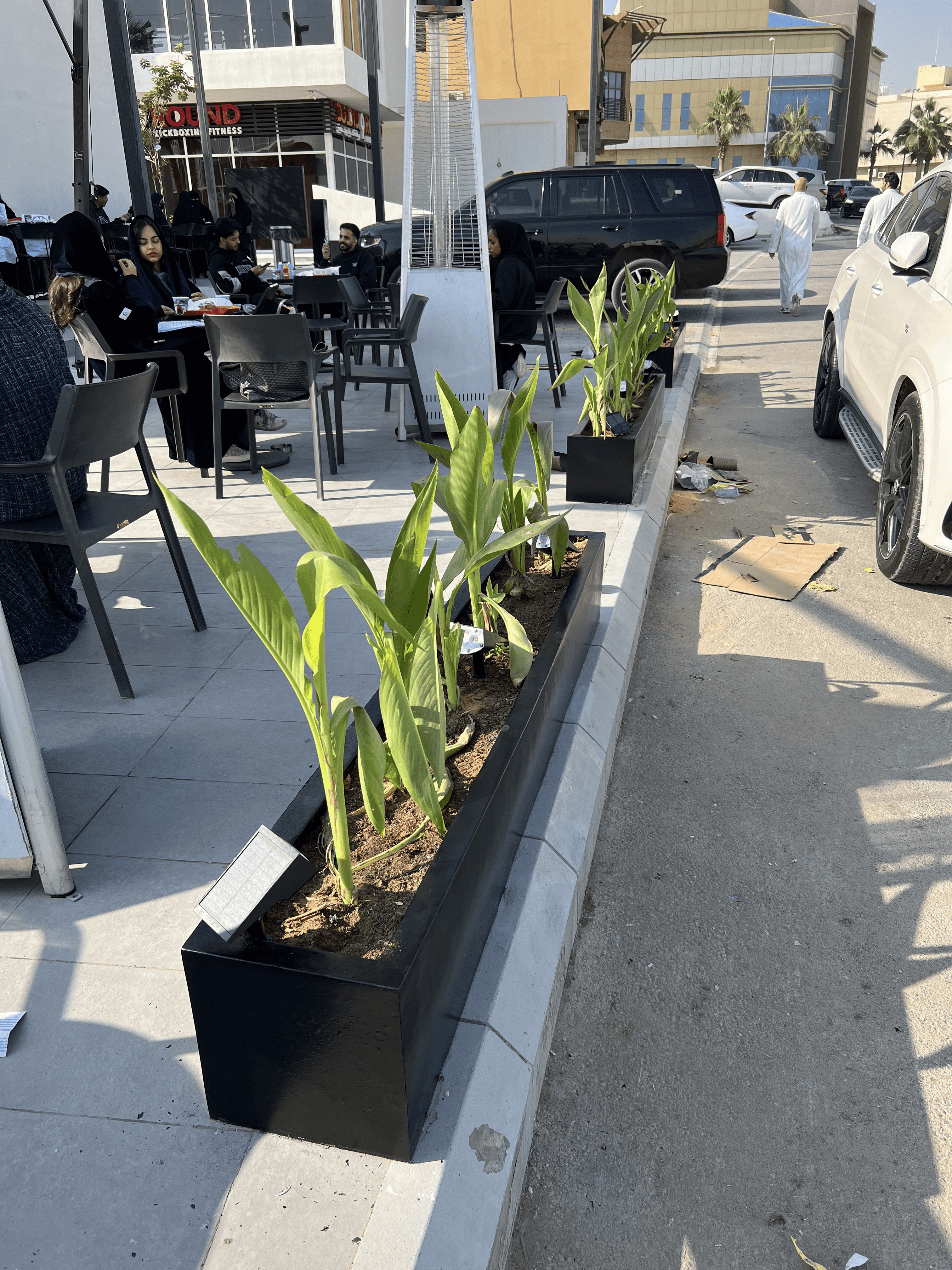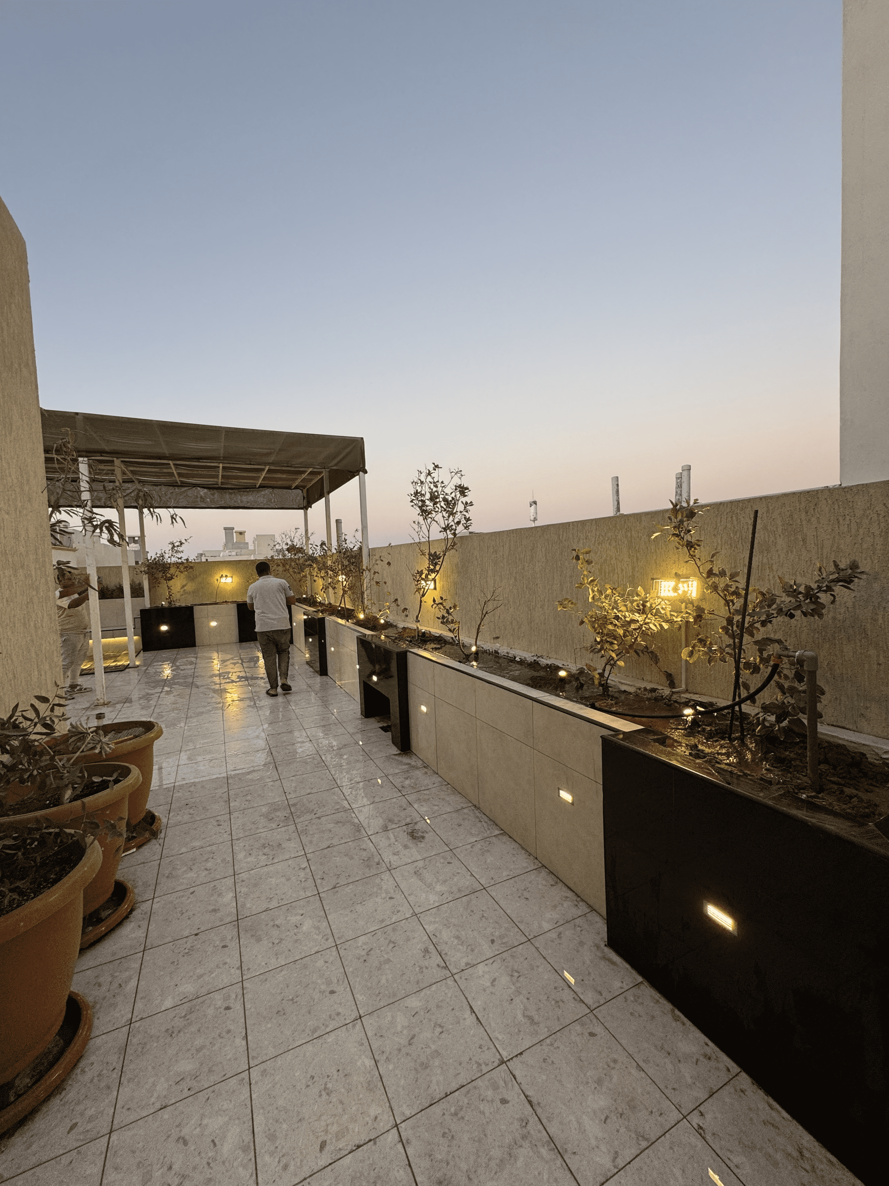 "سويت معهم تصميم لأحواض زرع على أطراف الجلسة الخارجية، وطلبت تكون مناسبة للجو الحار. نفذوها بالفايبرجلاس وبشكل هندسي مرتب. حتى العائلة لاحظت الفرق في شكل المكان."