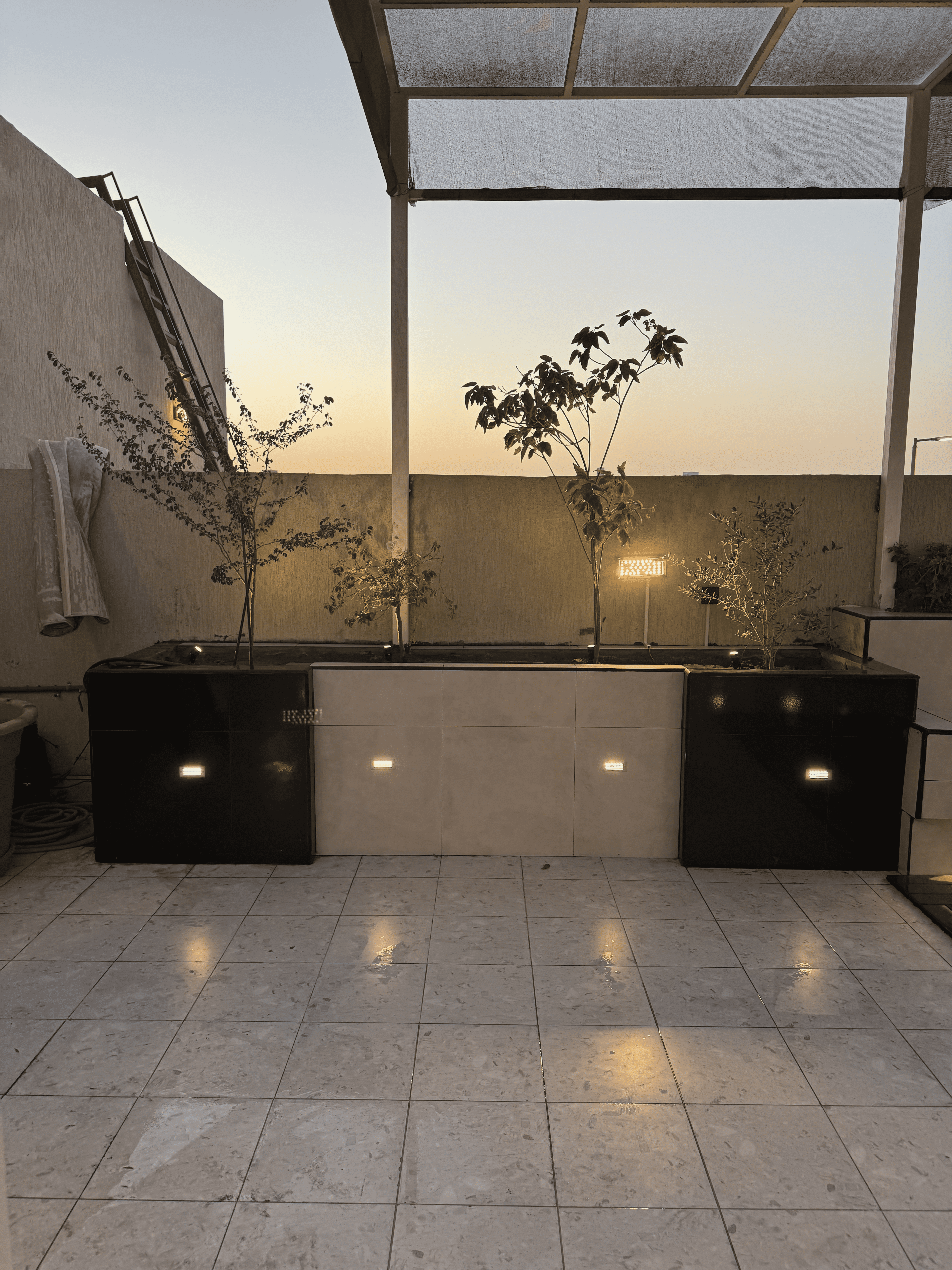 "كنت أدور على أحواض زرع فخمة وتتحمل الحرارة، ونصحوني بالفايبرجلاس. صراحة شكلها أنيق وخفيفة بنفس الوقت. أخذت منهم ٤ أحواض بأحجام مختلفة، وركّبوها مع ديكور بسيط طلع يفتح النفس."